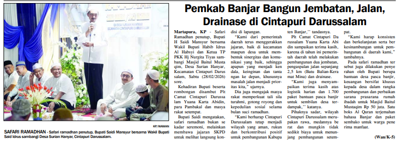PEMKAB BANJAR BANGUN JEMBATAN, JALAN DRAINASE DI CINTAPURI DARUSSALAM