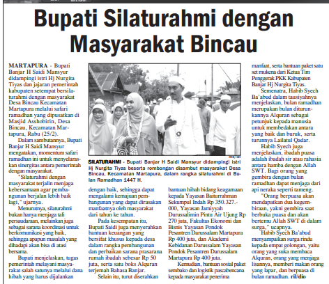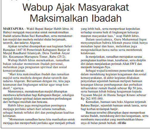 SAFARI RAMADAN WABUP BANJAR AJAK MASYARAKAT MAKSIMALKAN IBADAH DAN MAKMURKAN MASJID