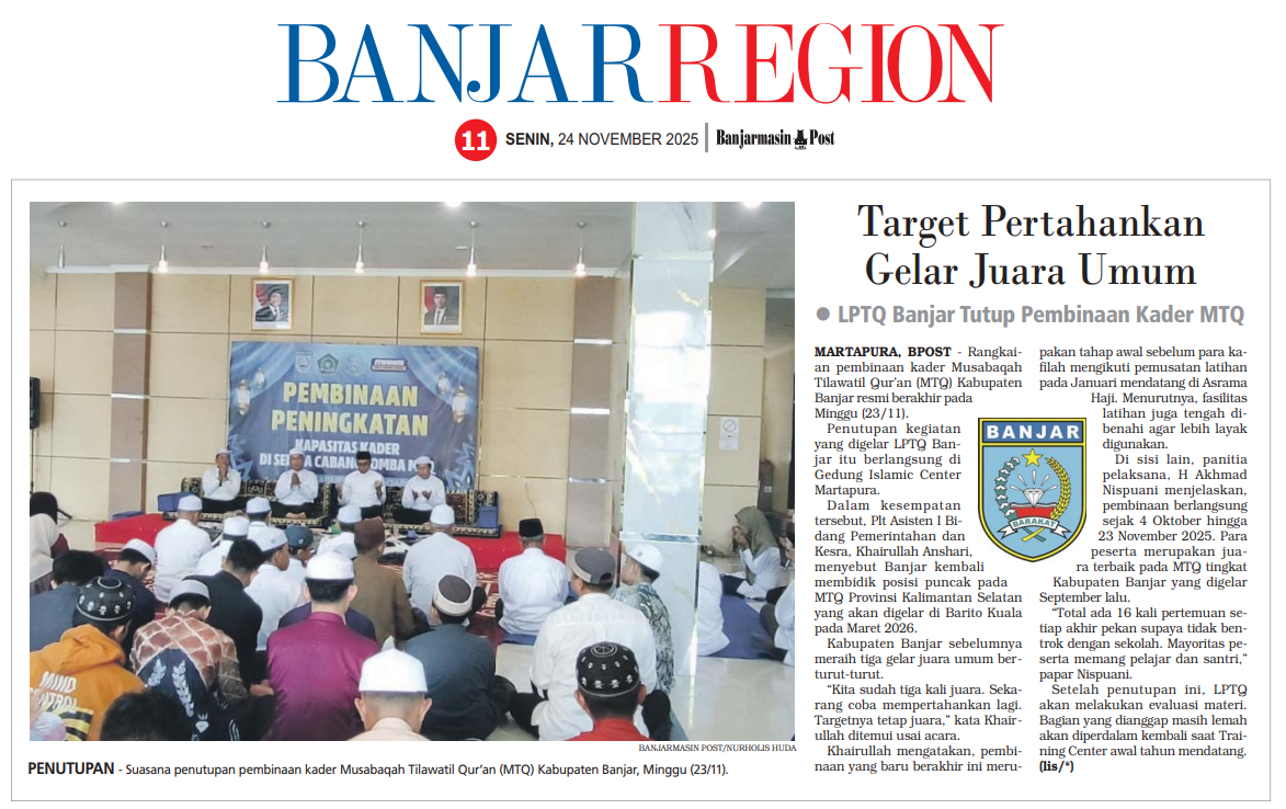 TARGET PERTAHANKAN GELAR JUARA UMUM - LPTQ BANJAR TUTUP PEMBINAAN KADER MTQ