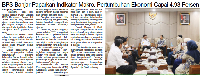 BPS BANJARPAPARKAN INDIKATOR MAKRO, PERTUMBUHAN EKONOMI CAPAI 4,93 PERSEN