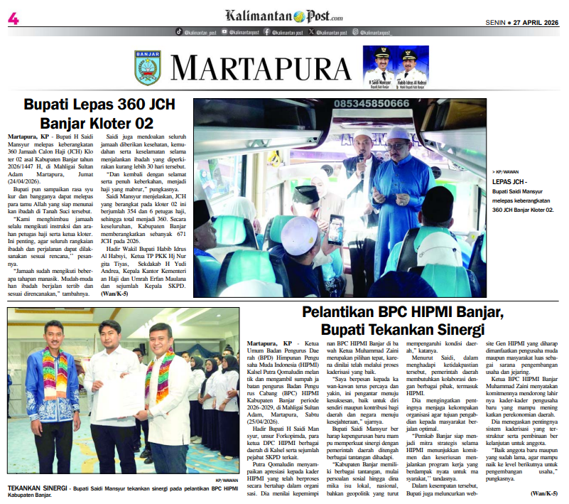 KALIMANTAN POST EDISI SENIN /27/04/2026