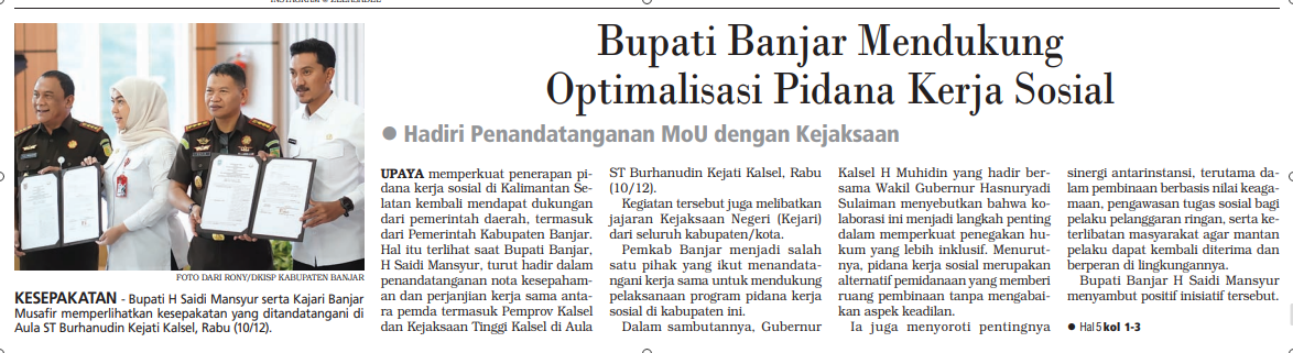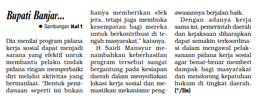 BUPATI BANJAR MENDUKUNG OPTIMALISASI PIDANA KERJA SOSIAL