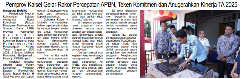 PEMPROV KALSEL GELAR RAKOR PERCEPATAN APBN, TEKEN KOMITMEN DAN ANUGERAHKAN KINERJA TA 2025