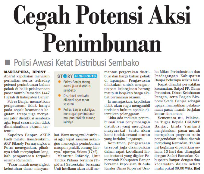 BANJARMASIN POST EDISI RABU /18/02/2026