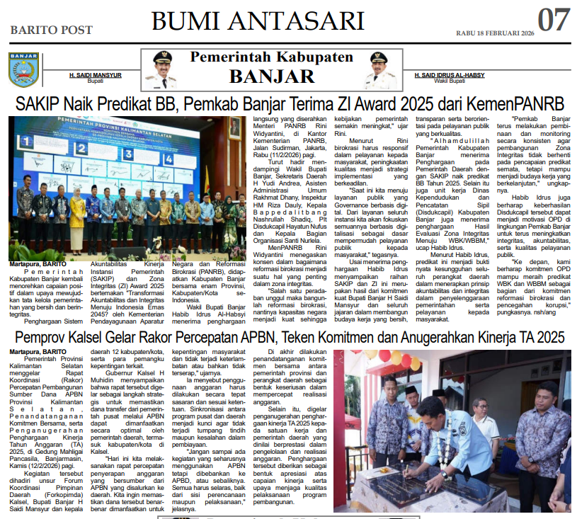 BARITO POST EDISI RABU /18/02/2026