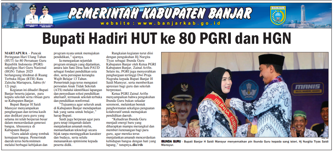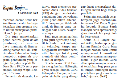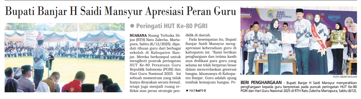 BUPATI BANJAR H SAIDI MANSYUR APRESIASI PERAN GURU