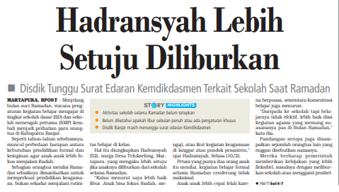 DISDIK TUNGGU SURAT EDARAN KEMENDIKDASMEN TERKAIT SEKOLAH SAAT RAMADAN