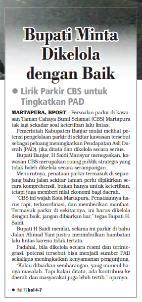 BUPATI MINTA DI KELOLA DENGAN BAIK - LIRIK PARKIR CBS UNTUK TINGKATKAN PAD