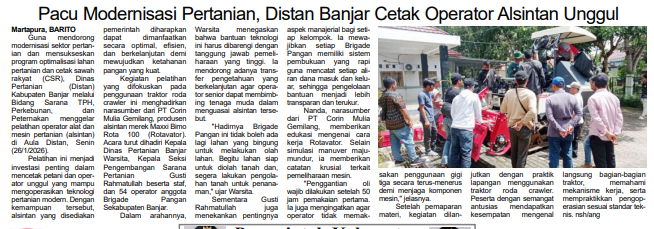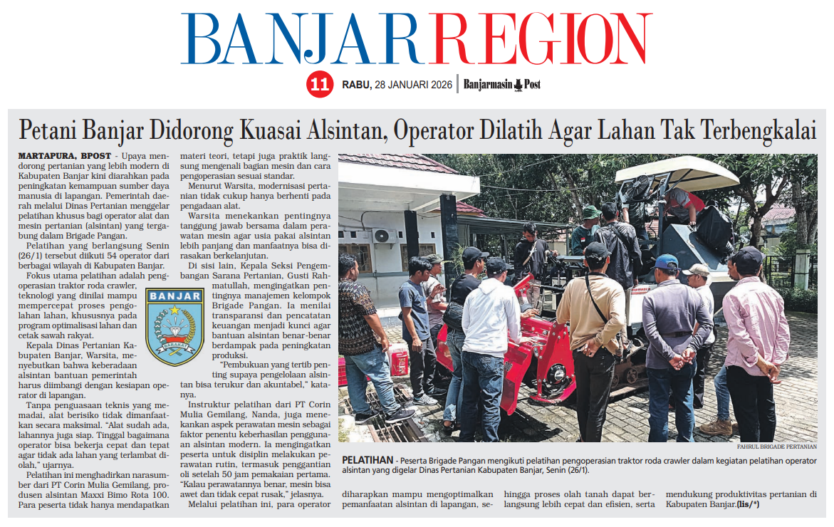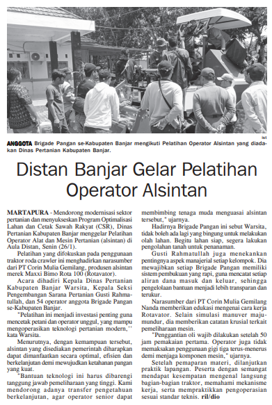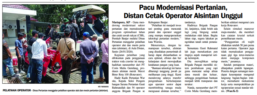 PACU MODERNISASI PERTANIAN, DISTAN BANJAR CETAK OPERATOR ALSINTAN UNGGUL
