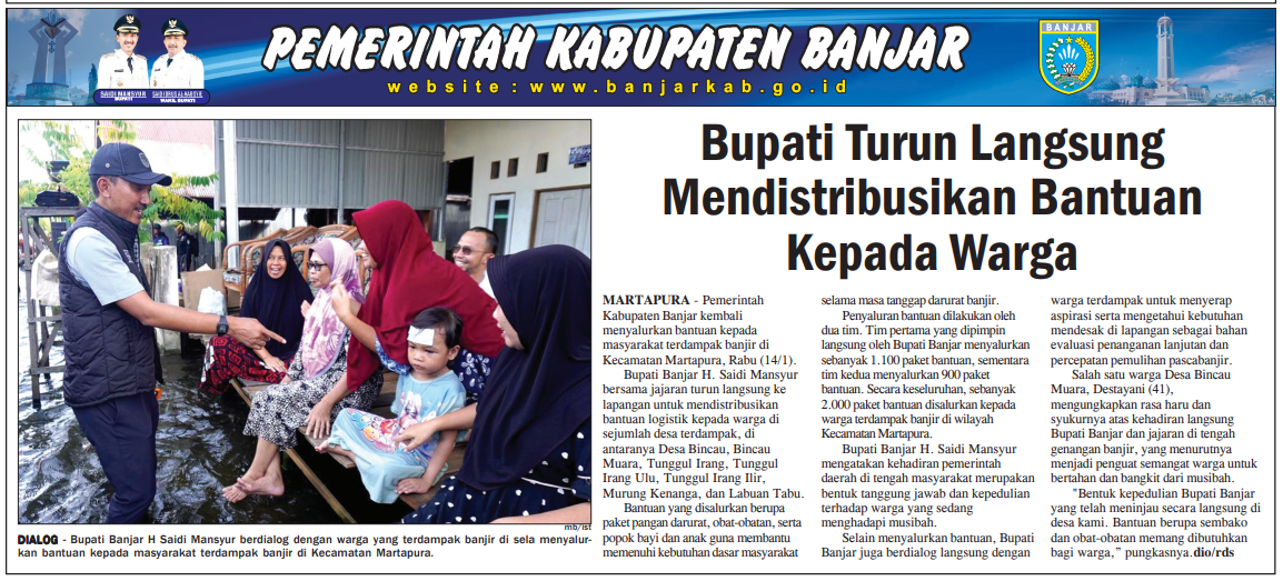 HARI KE- 15 BANJIR, PEMKAB BANJAR SALURKAN BANTUAN KERATUSAN KELUARGA DI MARTAPURA