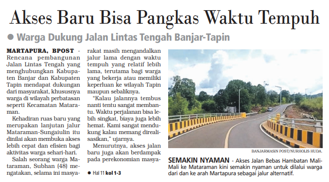 AKSES BARU BISA PANGKAS WAKTU TEMPUH - WARGA DUKUNG JALAN LINTAS TENGAH BANJAR - TAPIN