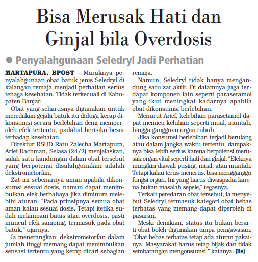 BISA MERUSAK HATI DAN GINJAL BILA OVERDOSIS - PENYALAHGUNAAN SELEDRYL JADI PERHATIAN