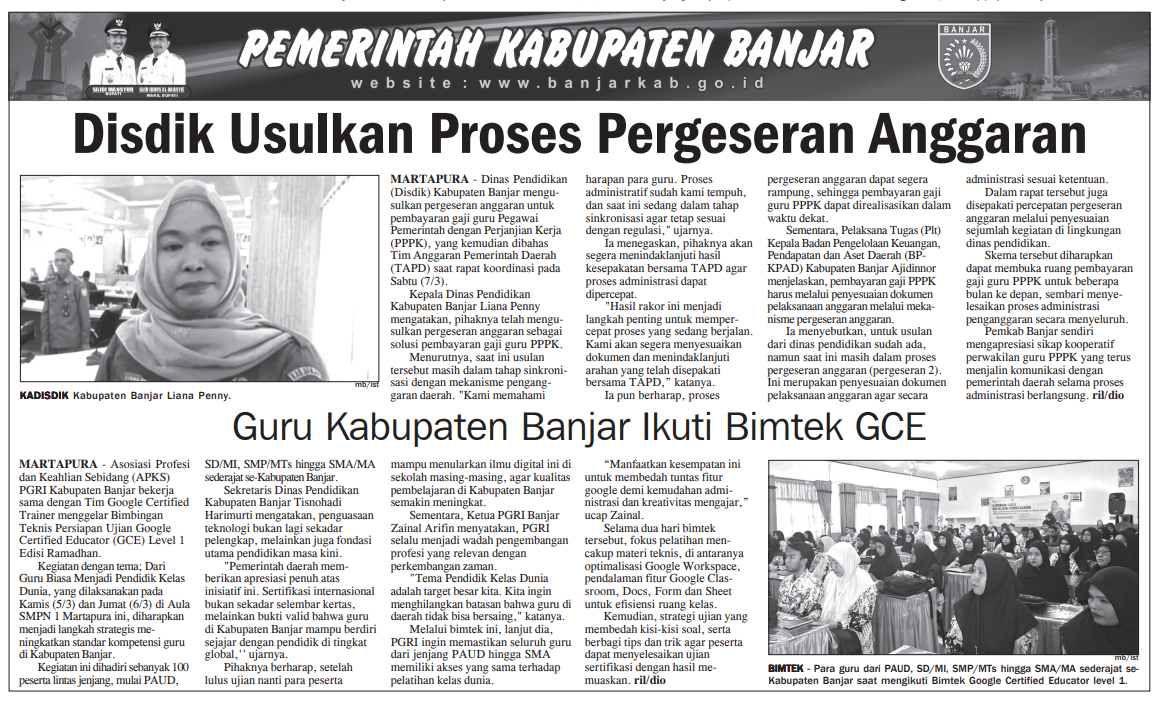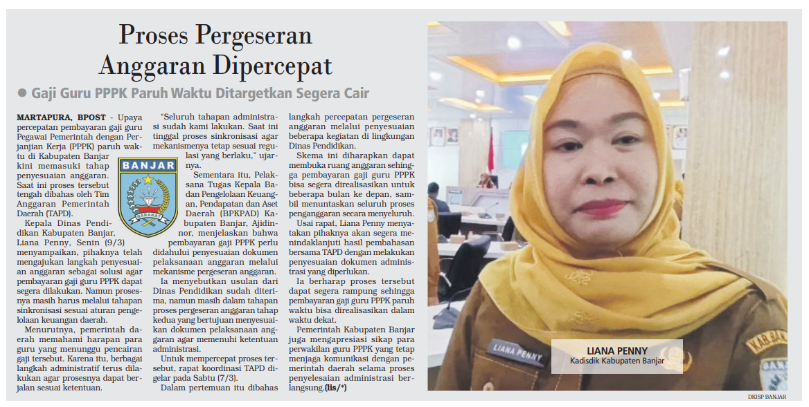 PEMKAB BANJAR PERCEPAT PERGESERAN ANGGARAN UNTUK BAYAR GAJI GURU PPPK