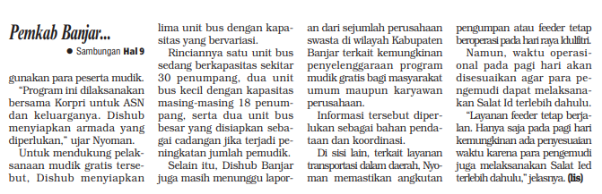 PEMKAB BANJAR SEDIAKAN ARMADA MUDIK GRATIS UNTUK ASN