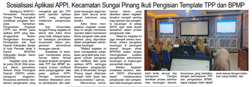 SOSIALISASI APLIKASI APPI, KECAMATAN SUNGAI PINANG IKUTI PENGISIAN TEMPLATE DAN BPMD