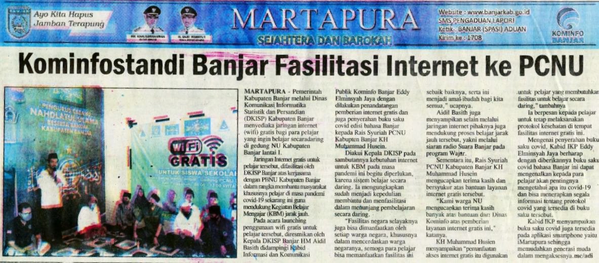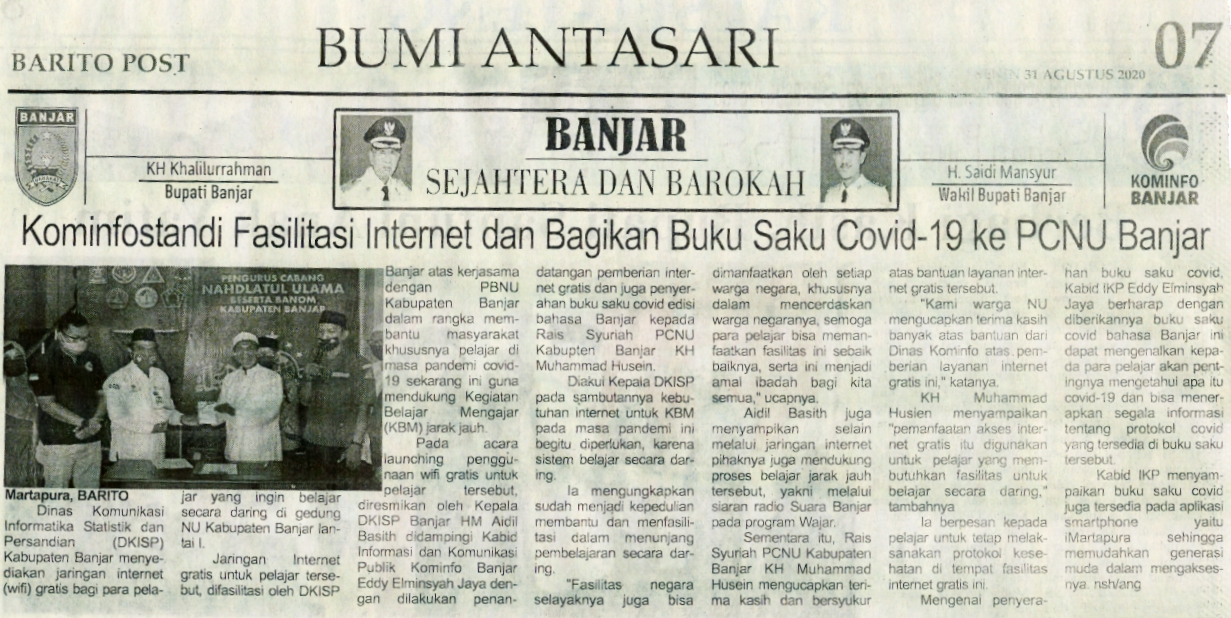 KOMINFOSTANDI FASILITASI INTERNET DAN BAGIKAN BUKU SAKU COVID 19 KE PCNU BANJAR