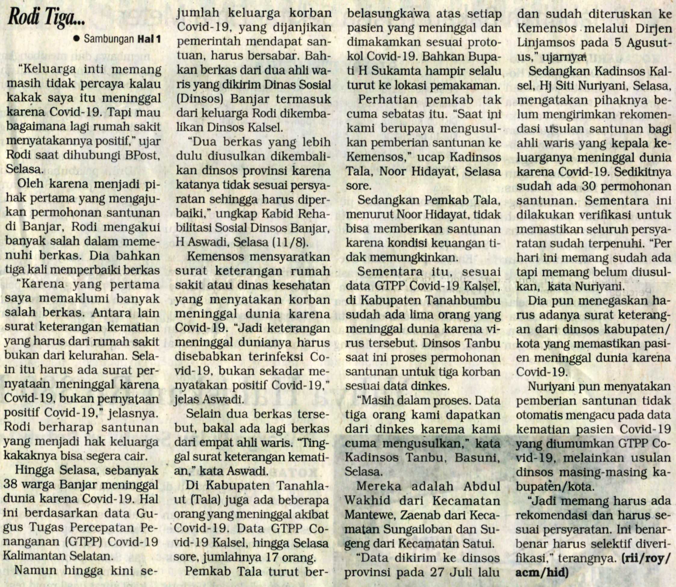 BANJARMASIN POST RABU 12/08/2020 SAMBUNGAN