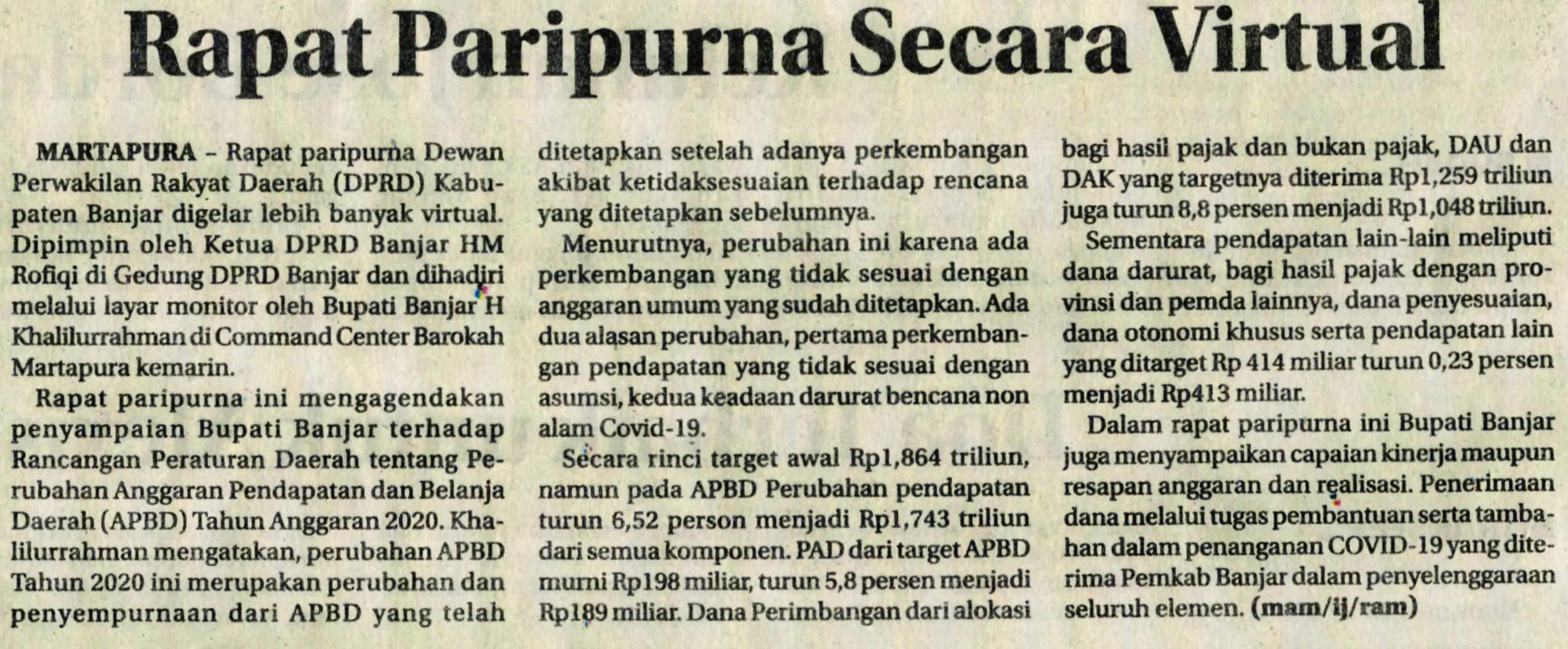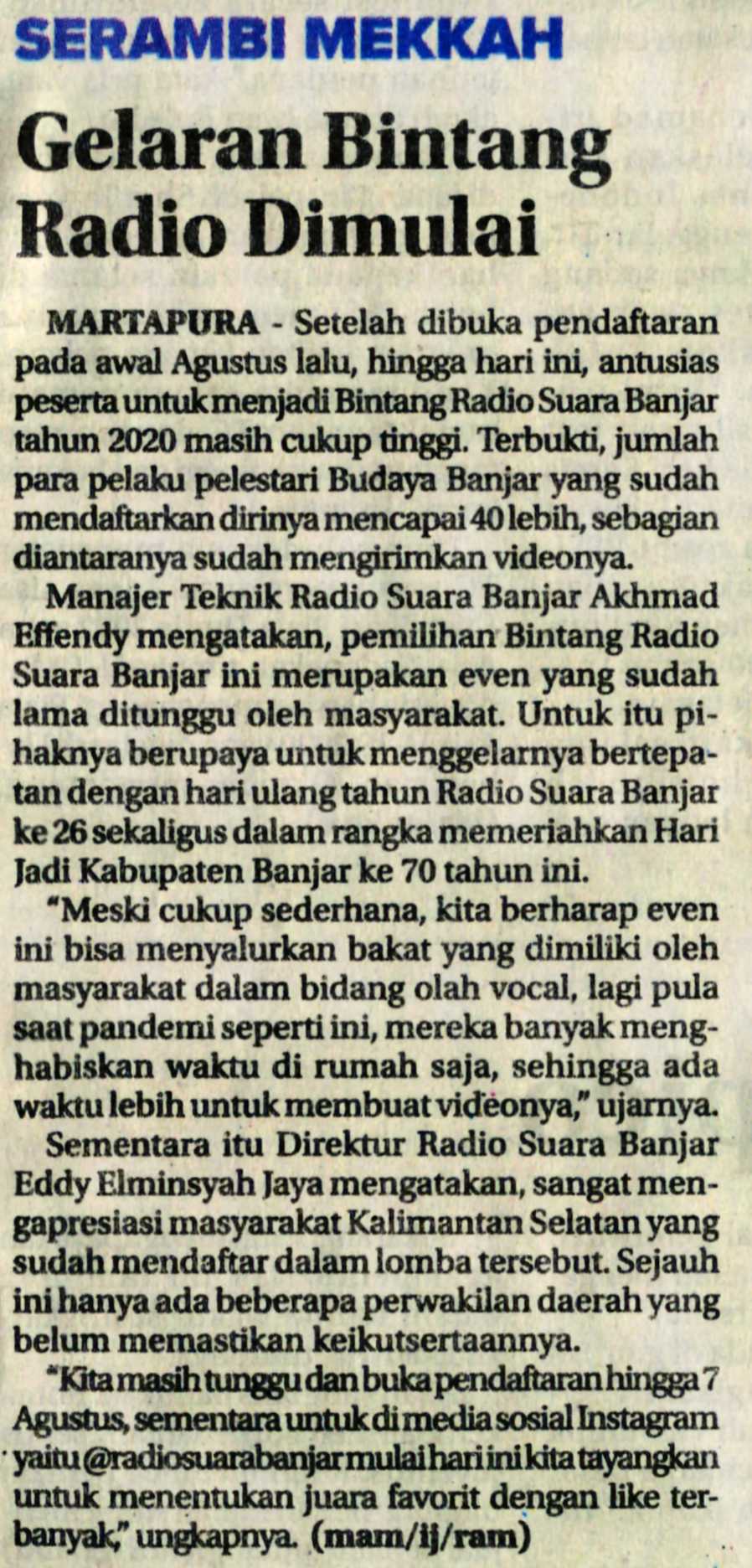 RADAR BANJARMASIN SABTU 8/08/2020