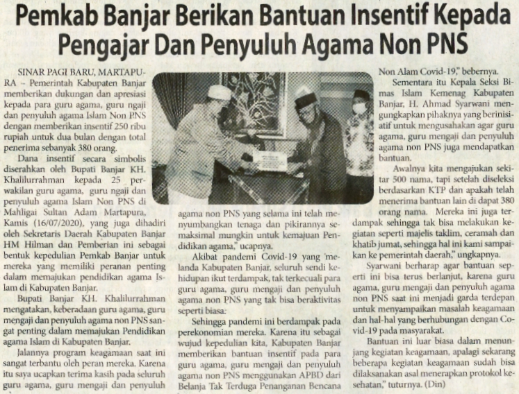 PEMKAB BANJAR BERIKAN BANTUAN INSENTIF KEPADA PENGAJAR DAN PENYULUH AGAMA NON PNS