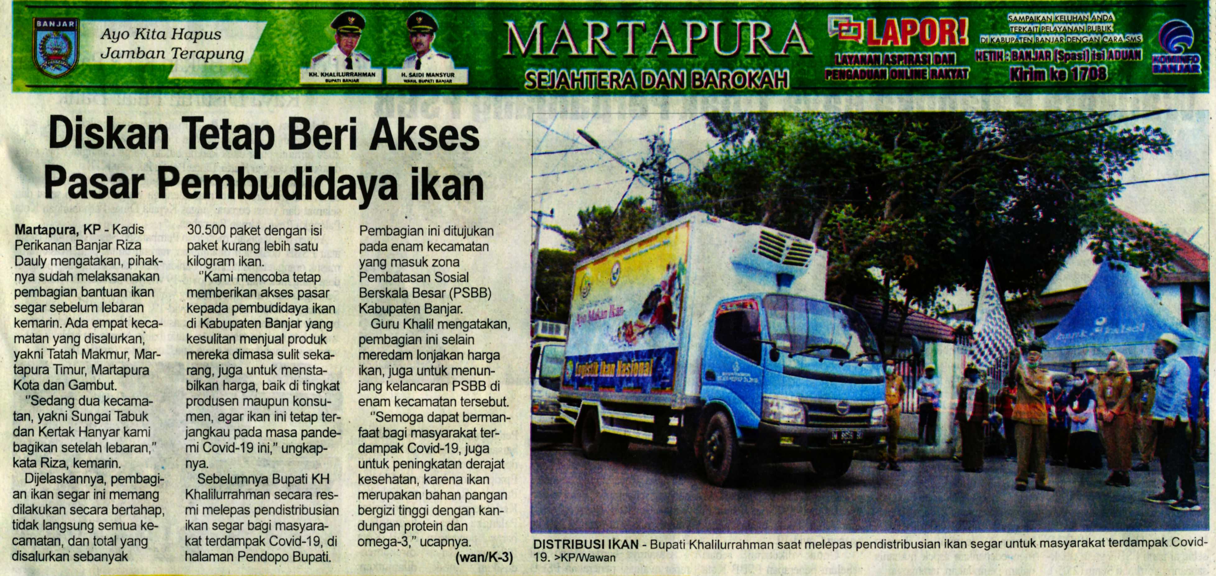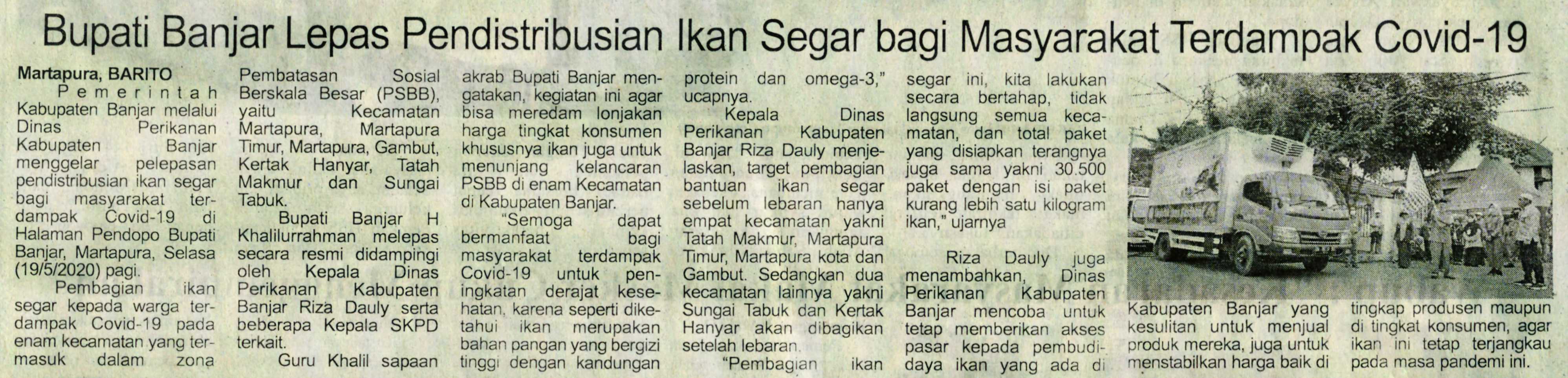 BUPATI BANJAR LEPAS PENDISTRIBUSIAN IKAN SEGAR BAGI MASYARAKAT YANG TERDAMPAK COVID-19