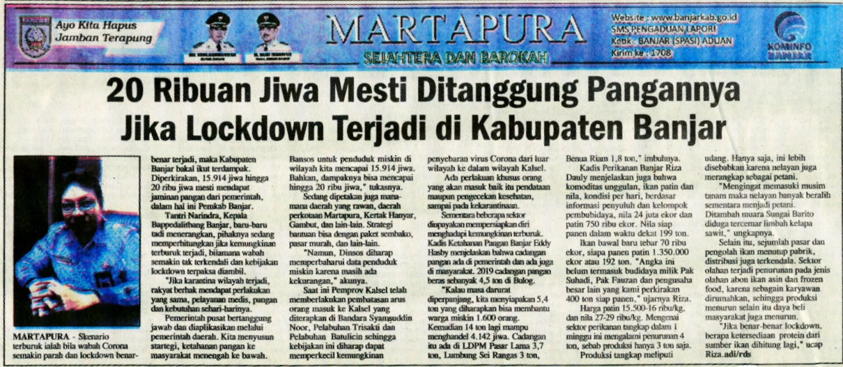 20 RIBU JIWA MESTI DITANGGUNG PANGANNYA JIKA LOCKDOWN TERJADI DI KABUPATEN BANJAR